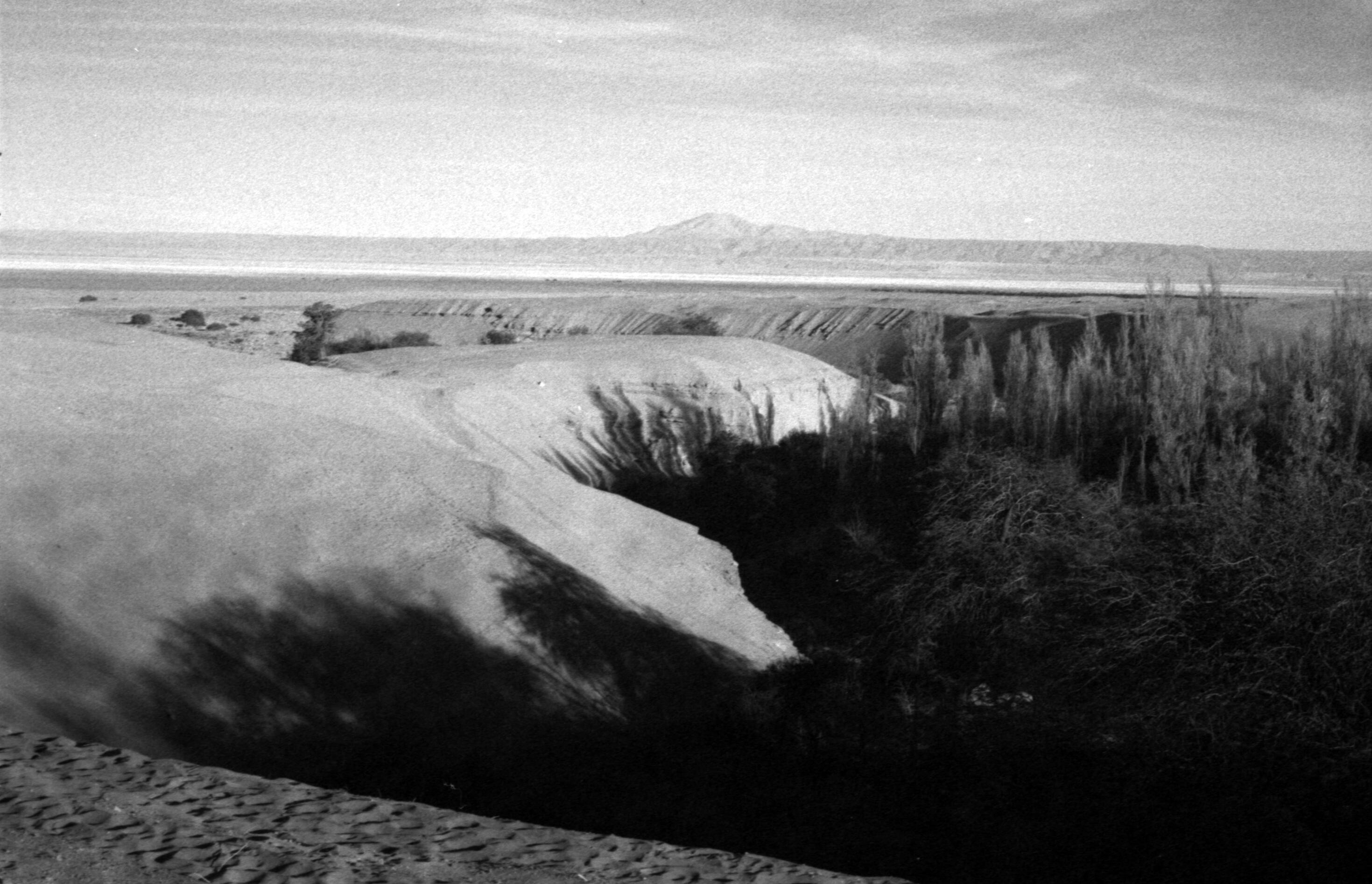 Spaces In-Between presents a critical exploration of the Atacama Desert through a series of analogue photographs and drawings emphasizing the complex relationship between water, space, and human adaptation. Water, as a scarce yet vital element, plays a transformative role in shaping the Andean landscape and the sociocultural dynamics within it. Its flows create both conflict and cooperation, structuring the interactions between communities, institutions, and their environment. These flows define spaces where settlement patterns emerge, framing the conditions that sustain life amidst one of the world’s most extreme climates.The images focus on Toconao, a village situated east of the Atacama salt flat basin, 38 kilometers from San Pedro de Atacama, at an altitude of 2,500 meters above sea level. The photographic series captures the nuanced transitions that define these spaces: the interplay of light and shadow, the shifts from heat to cold, and the passage from day to night. It reveals the duality of the desert, where subsistence agriculture flourishes precariously alongside some of the most profitable mining operations on the planet, highlighting the coexistence of powerful economic forces and the resilience of indigenous communities.Spaces In-Between goes beyond a visual narrative to map the interconnections between place and time, illustrating how the past informs the present and shapes future possibilities. This series also reflects a personal narrative, bridging the cultural and geographical distance between Chile and Austria. It invites viewers to consider in-between spaces not just as physical gaps, but as foundational elements that frame the lived experience, resilience, and identity of those who inhabit the Atacama Desert.